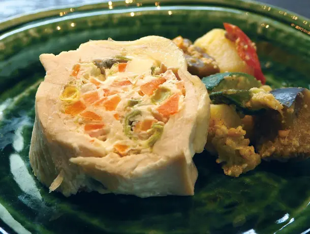 原材料:ロールチキン(鶏肉(国産)、プロセスチーズ、にんじん、キャベツ、グリンピース、スイートコーン、いんげん、ピーマン)、彩り野菜のごま&チーズ和えじゃがいも、なす、ズッキーニ、ピーマン、ごま、チーズ、乳化剤(一部に乳成分・ごま・鶏肉を含む) ※写真はイメージです