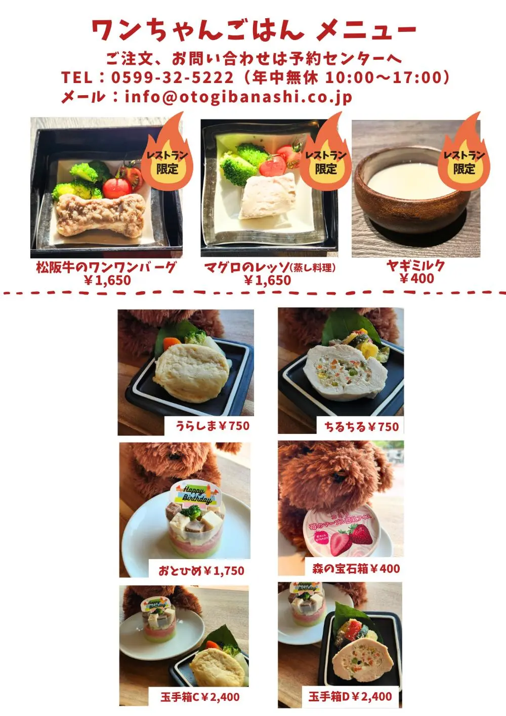 松阪牛のワンワンバーグ、マグロのレッソ、ヤギミルク